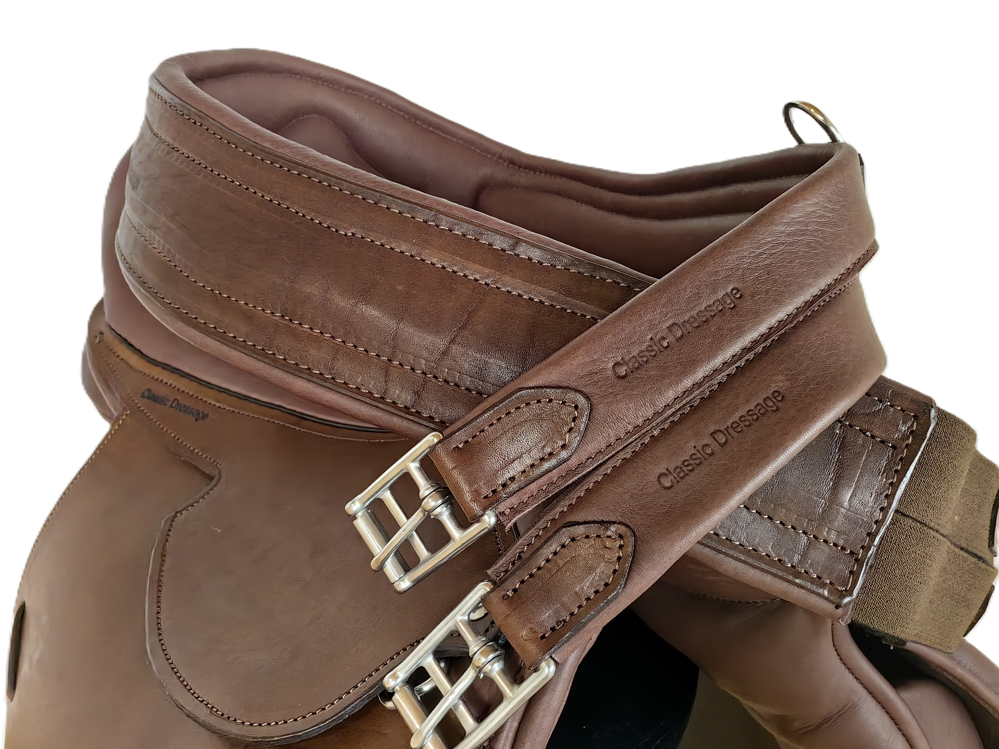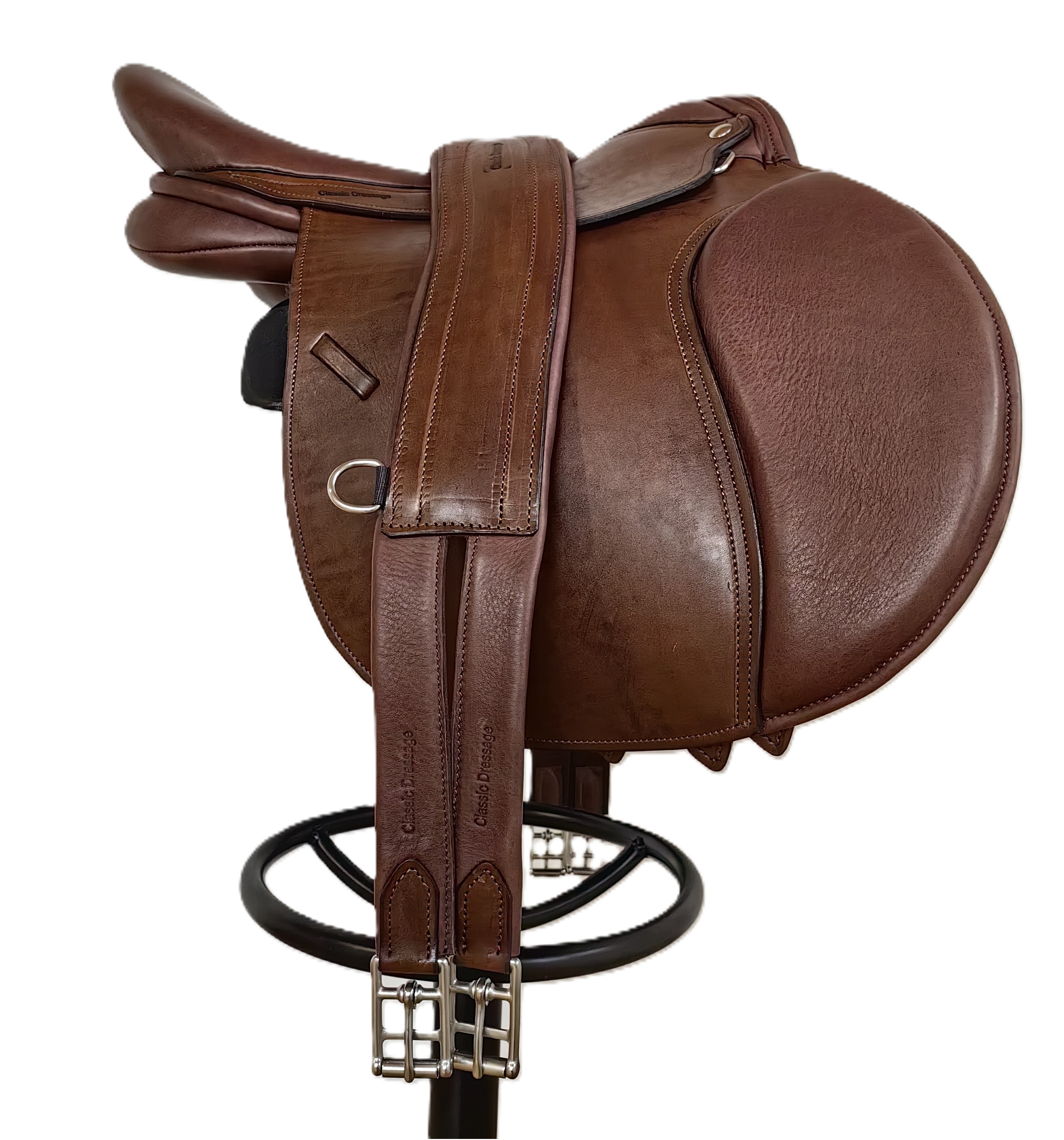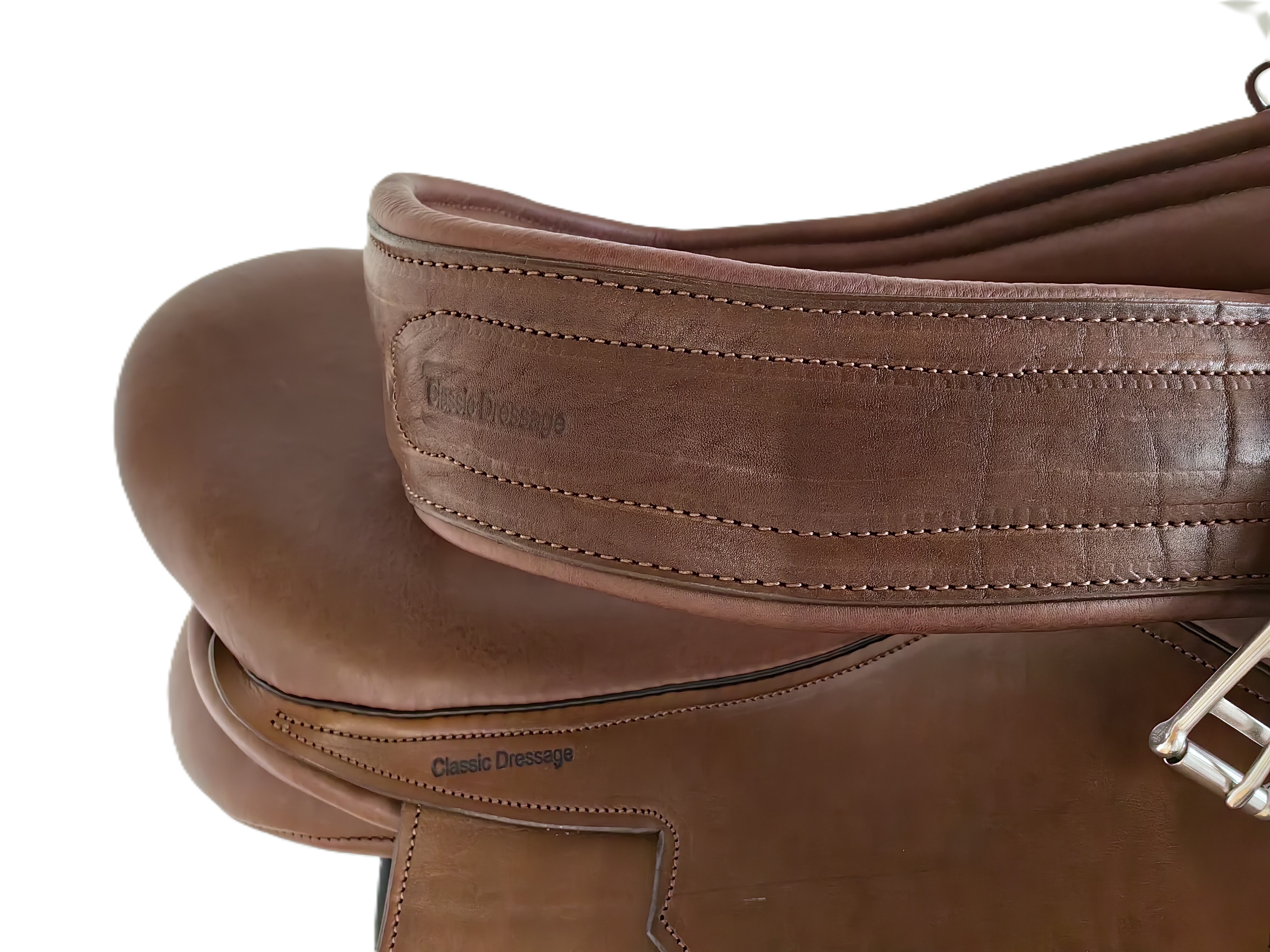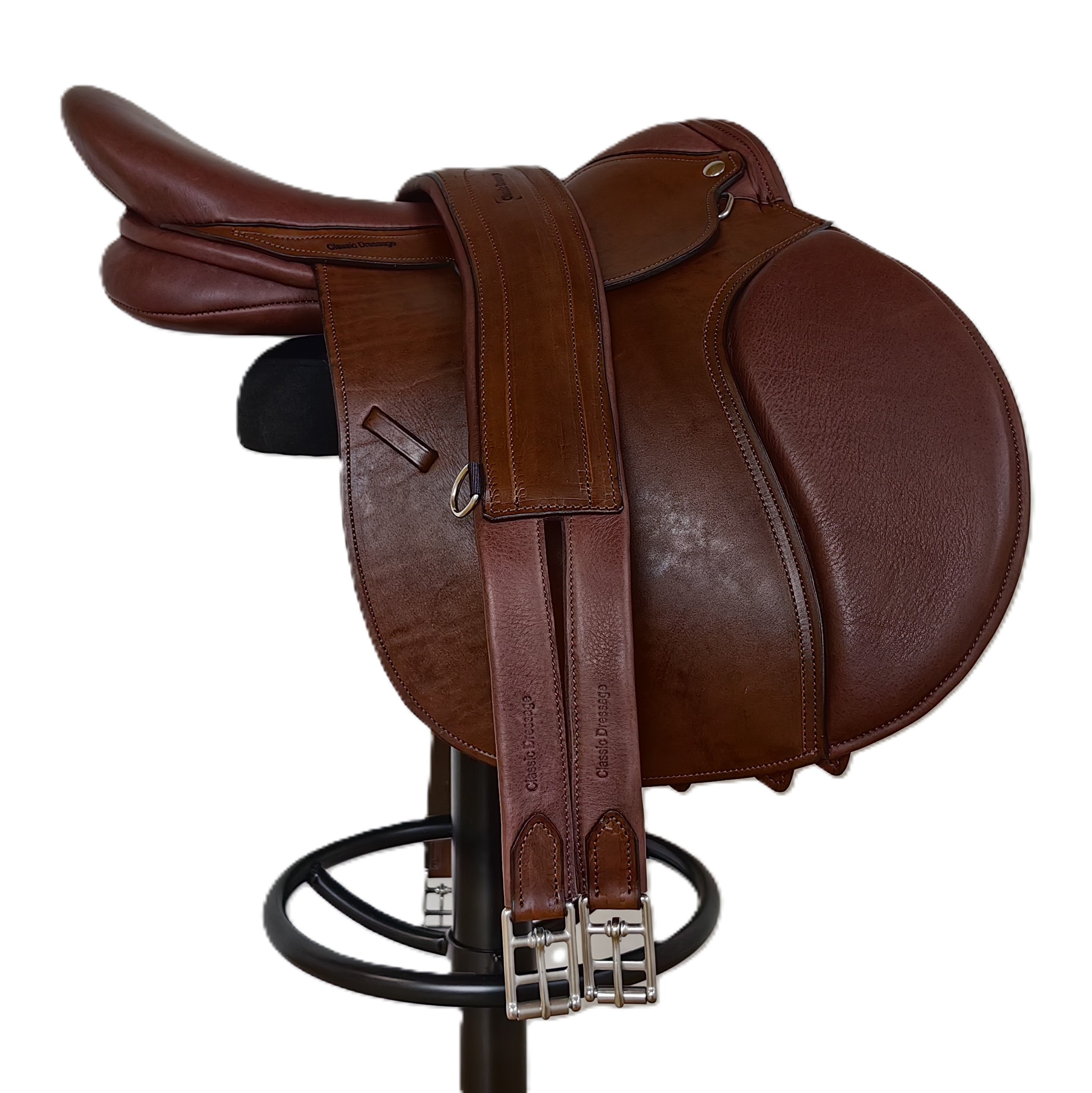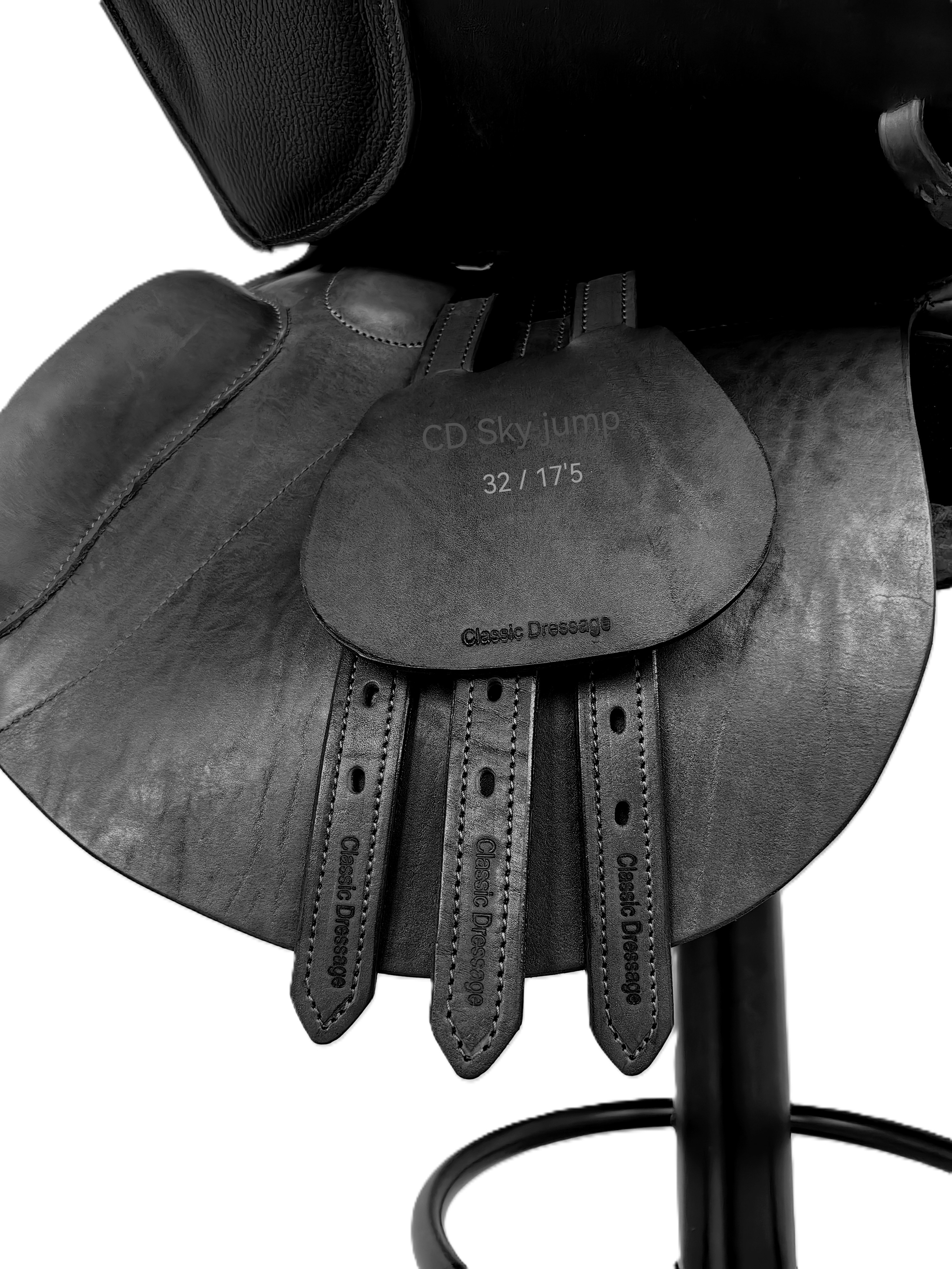 В цене указан 50% размер предоплаты при заказе Конкурное седло Classic dressage Sky Jump Классический дизайн. Мягкое комфортное сиденье, может выполняться со стандартной или спущенной задней лукой. Мягкая, плотная, из нескользящей кожи подушка переднего упора. Длина крыла 40 см в стандарте, может выпускаться с укороченным крылом. Высота упора с 5,5 см. Приструги три шт. - 34 см. Полностью выполнено из натуральной кожи.