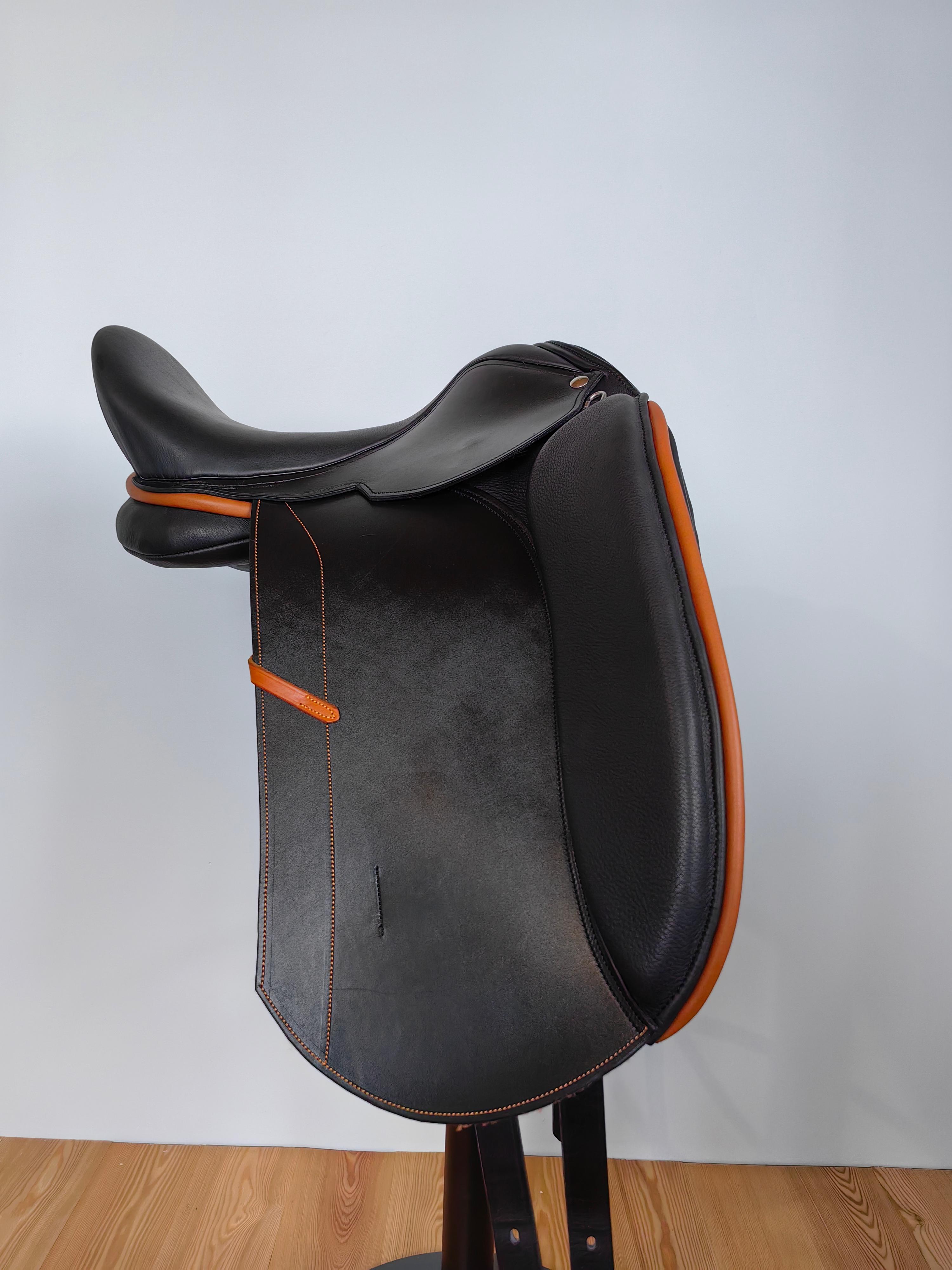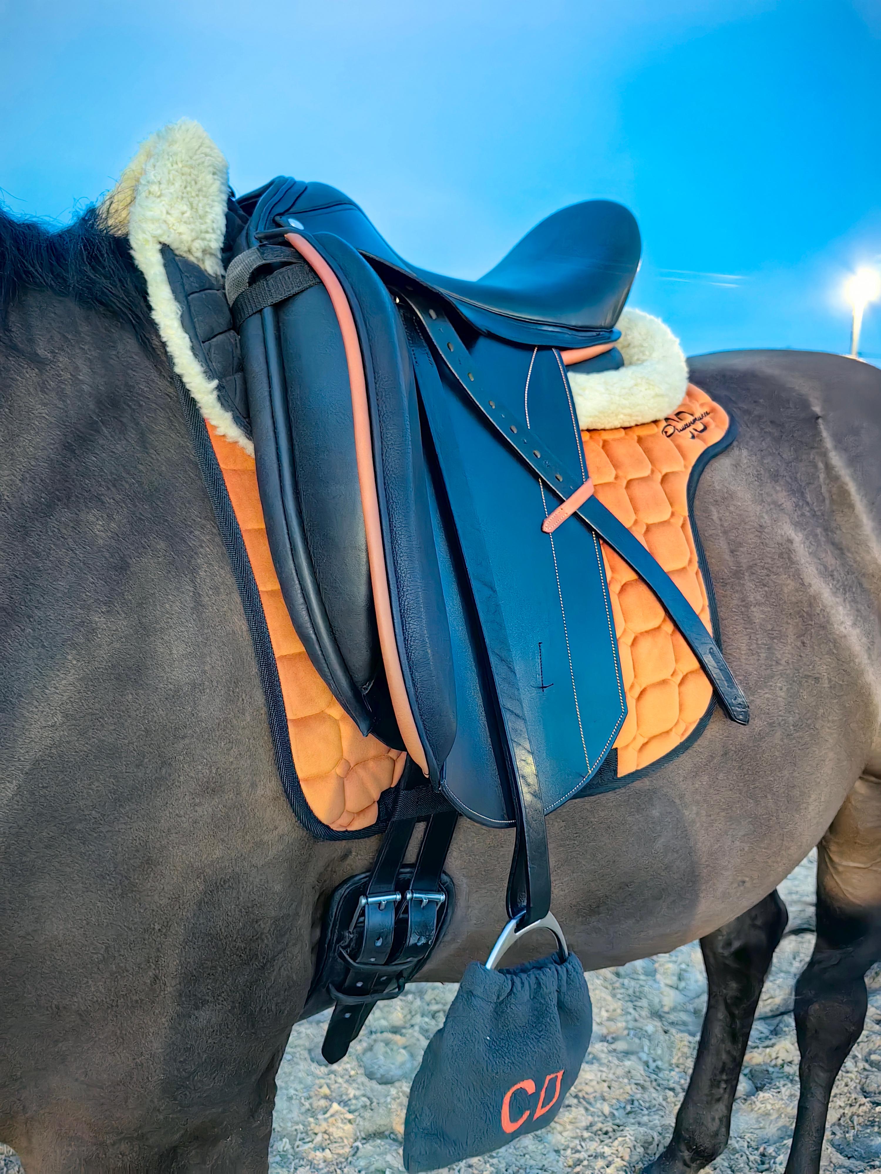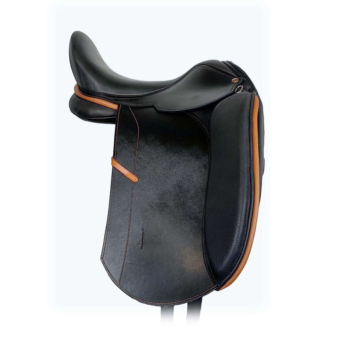 ВАЖНО!!! В цене указан 50% размер предоплаты при заказе Обращайте внимание на полную стоимость. Классическая выездковая посадка Высокая задняя лука Супер мягкое сиденье Расширенное внизу верхнее крыло Увеличенные передние упорные подушки по всей длине ноги Внутренние упоры Сбалансированные V-образные задние приструги Фиксирует сильно Крыло удлинённое для выдерживания ноги в максимально прямой Шлевка придерживания путлища у края крыла Эстетичный дизайн с контрастной отделкой Полностью натуральная кожа